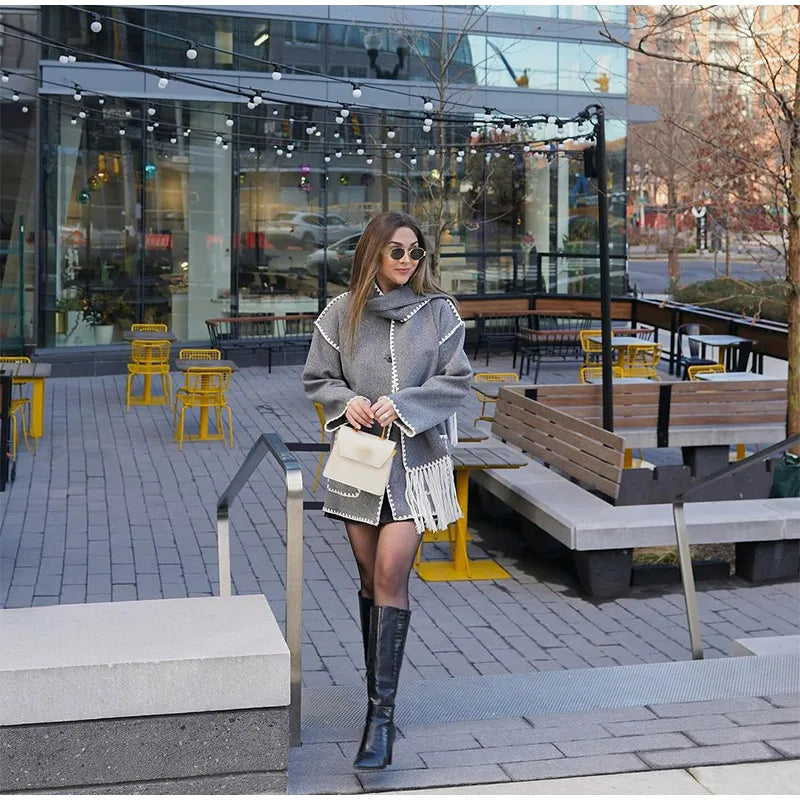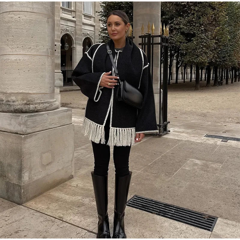 Elevate your outerwear with the Charlotte, a chic blend of style and comfort. Featuring a unique zigzag pattern, this coat is designed to make a statement while keeping you cozy. The elegant shawl collar drapes beautifully, adding a touch of sophistication to your look, whether you're dressing up for a night out or layering for casual daytime wear.